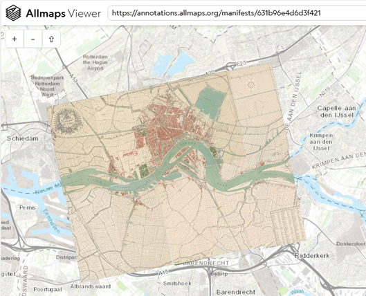 De testcase waarmee Stadsarchief Rotterdam aan de slag is gegaan is de open source kaartentool Allmaps. Deze online tool kan door iedereen worden gebruikt om kaarten te bekijken, te delen en te georefereren en is helemaal gebouwd via de principes van IIIF.