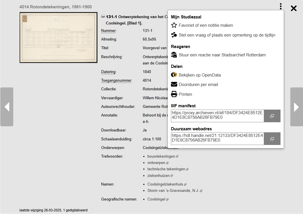 Stadsarchief Rotterdam heeft in samenwerking met Het Utrechts Archief en Regionaal Archief Sittard-Geleen opdracht gegeven om de IIIF standaard te implementeren in Mais Flexis (het archief en collectiebeheersysteem). Bij de implementatie kregen we de hulp van de expertise van het NDE. Voor het implementatietraject hebben we een bijdrage ontvangen van het programma Versnellen van het ministerie van Onderwijs, Cultuur en Wetenschap (OCW).